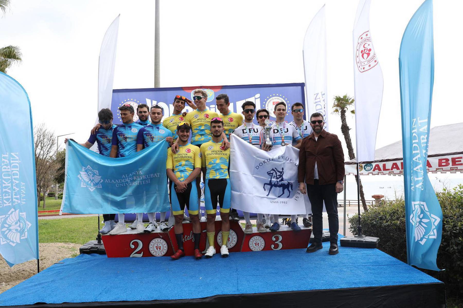 Alanya Alaaddin Keykubat Üniversitesi (ALKÜ) ev sahipliğinde başlayan ÜNİLİG Yol ve Dağ Bisikleti Türkiye Şampiyonası başladı. Şampiyonanın ilk yarışı Yol Bisikleti Türkiye Şampiyonasında Kadın Takım Klasmanında ALKÜ, Erkek Takım Klasmanında Selçuk Üniversitesi birinci oldu.