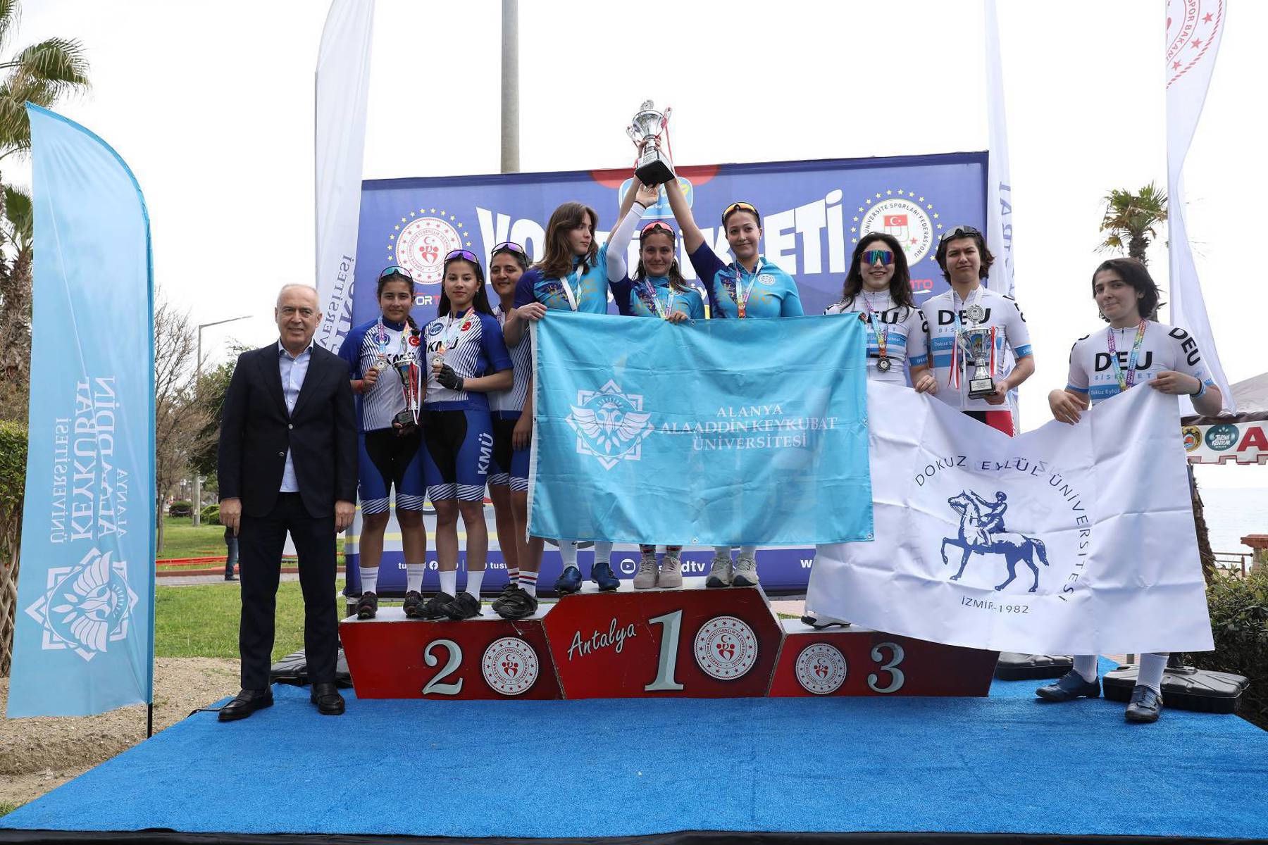 Şampiyonların belli olmasının ardından Federasyon Başkanı Prof. Dr. Mutlu Türkmen yaptığı konuşmada, sporcuları tebrik etti. Başkan Türkmen, şampiyonanın Alanya’da düzenlenmesinden büyük memnuniyet duyduklarını belirterek organizasyona destekleri için Alanya Kaymakamlığına, Alanya Belediyesine, Türkiye Bisiklet Federasyonuna, Türkiye Üniversite Sporları Federasyonuna, İlçe Gençlik ve Spor Müdürlüğüne, ALKÜ Rektörü Prof. Dr. Kenan Ahmet Türkdoğan’a ve kurumlara teşekkür etti. Konuşmanın ardından protokol üyeleri şampiyonlara kupa ve madalyalarını verdiler. Yol Bisikleti Şampiyonası toplu hatıra fotoğrafı ile sona erdi. Şampiyonanın diğer etabı Dağ Bisikleti Yarışları 15 Nisan 2026 Çarşamba günü saat 10.00’da Alanya Kızılalan mevkisinde yapılacak.