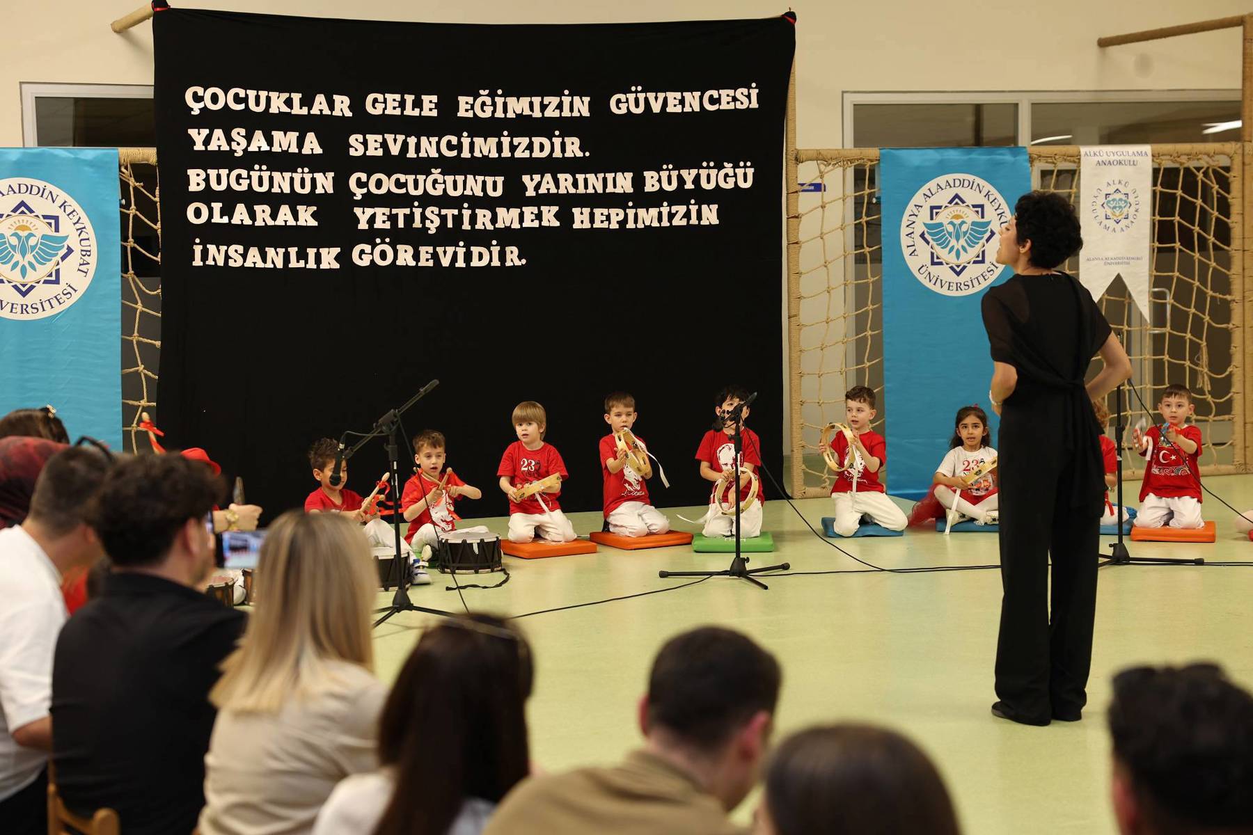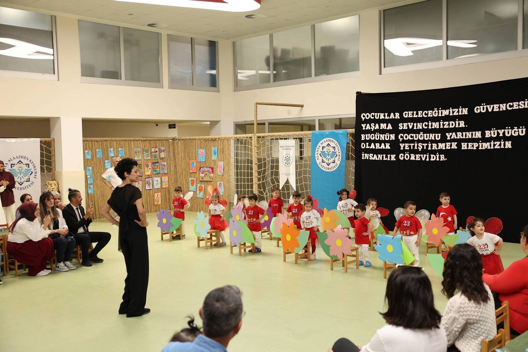 Alanya Alaaddin Keykubat Üniversitesinde (ALKÜ), 23 Nisan Ulusal Egemenlik ve Çocuk Bayramı, çeşitli okullardan çocukların ziyaretleri, makam koltuklarının devredilmesi ve ALKÜ Uygulama Anaokulunun yaptığı birbirinden güzel etkinliklerle coşkuyla kutlandı