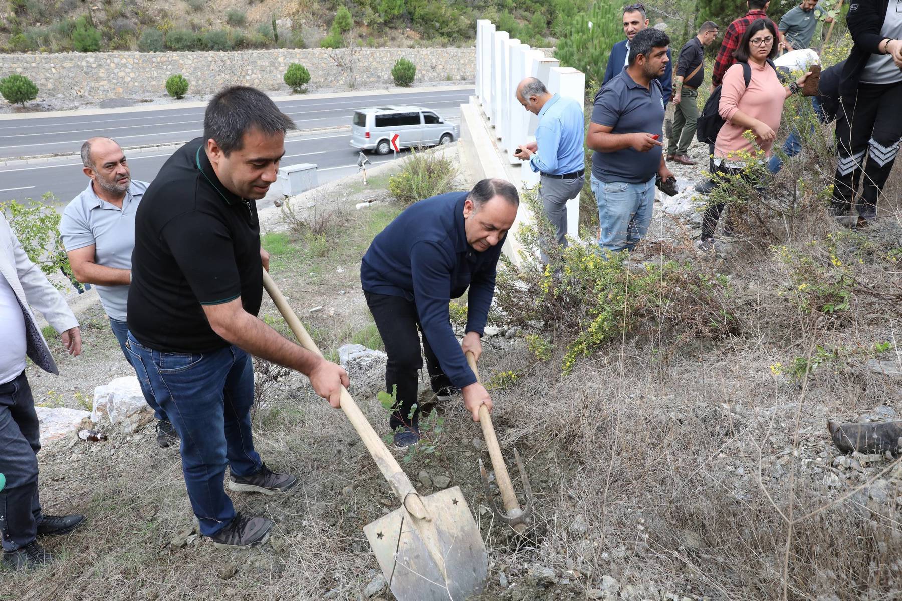Alanya Alaaddin Keykubat Üniversitesi (ALKÜ), doğa ve çevre dostu projeler üretmeye devam ederken bir taraftan da yeşil alanları korumayı ve büyütmeyi sürdürüyor. 11 Kasım Milli Ağaçlandırma Günü kapsamında Yeşil Vatan Seferberliğine destek olan ALKÜ, her yıl olduğu gibi bu yılda fidanları toprakla buluşturdu. ALKÜ 10. Yıl Hatıra Ormanı’nda gerçekleştirilen fidan dikim etkinliğine daire başkanları, akademisyenler, idari personel ve öğrenciler katıldı. Etkinlik kapsamında personelin ve öğrencilerin katılımıyla onlarca keçiboynuzu fidanı toprakla buluşturuldu. Fidanlar toprakla buluştuktan sonra etkinliğe katılan ekip, birlikte toplu hatıra fotoğrafı çekildi. Alanya Kaymakamlığı ve Alanya Orman İşletme Müdürlüğü tarafından Kızılalan Mevkinde düzenlenen fidan dikim etkinliğine Rektör Yardımcısı Prof. Dr. Işık Bayraktar katıldı. Rektör Yardımcısı Bayraktar, burada öğrencilerle birlikte fidan dikimi yaptı.