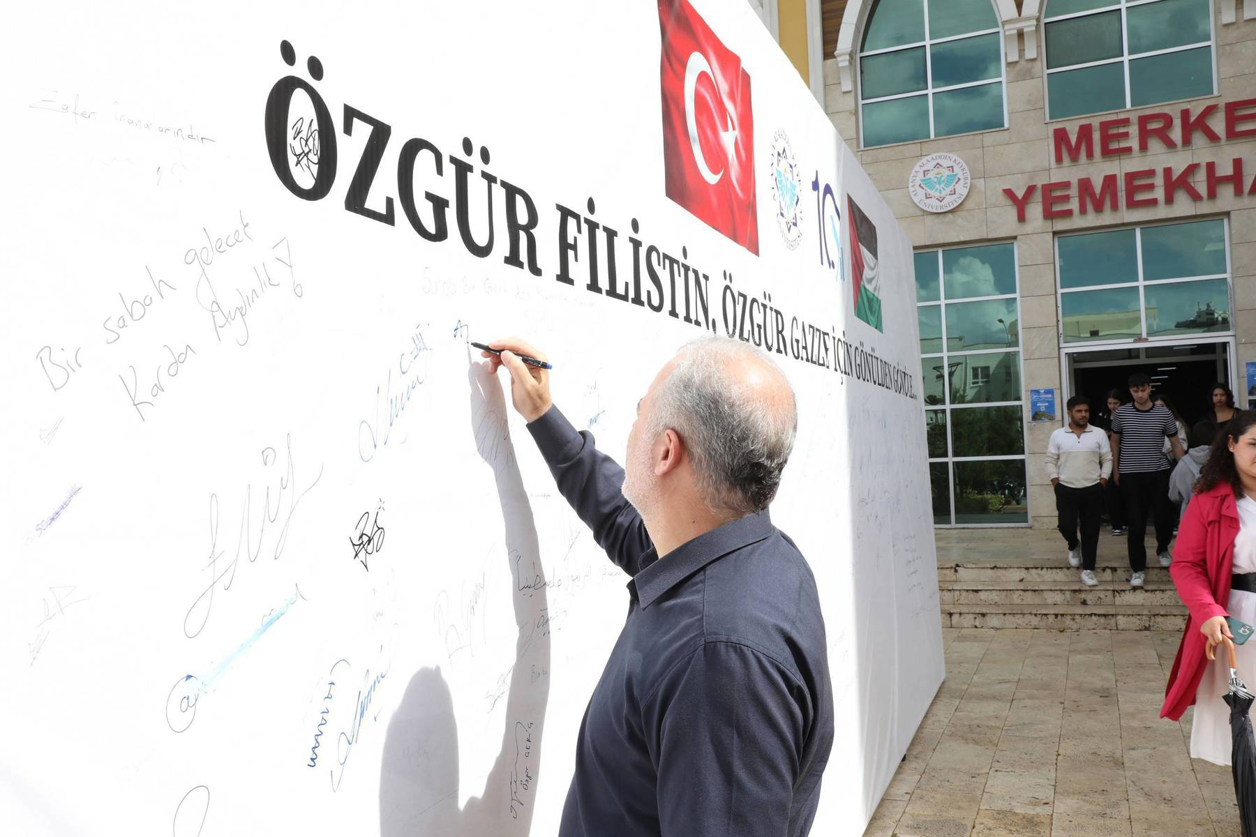 Alanya Alaaddin Keykubat Üniversitesi (ALKÜ) Kestel Yerleşkesinde “Özgür Filistin, Özgür Gazze için Gönülden Gönüle…” imza platformuna akademisyenler, idari personel ve öğrenciler tarafından destek devam ediyor.