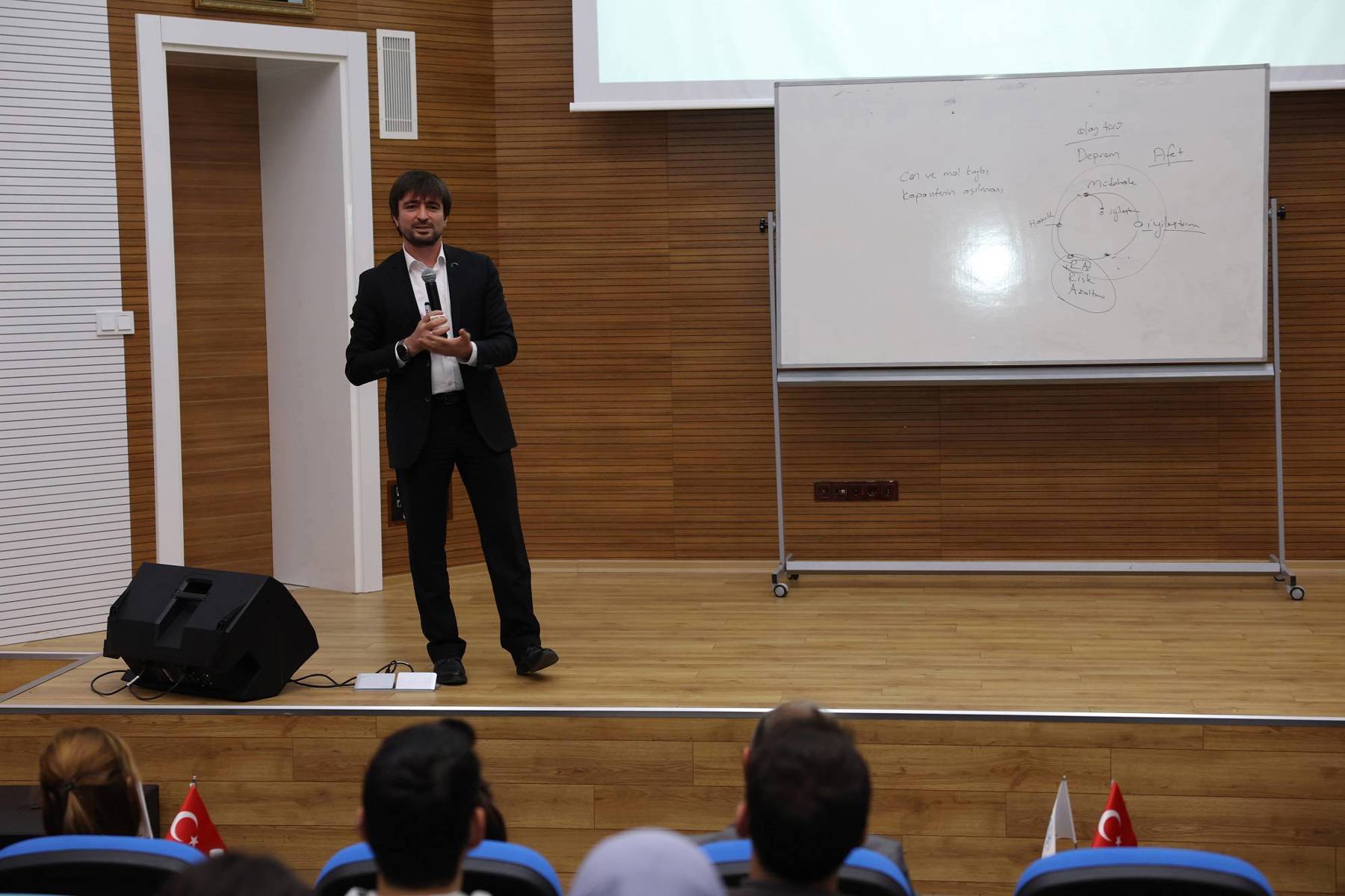 ALKÜ’lü öğrencilere yönelik bilgi ve tecrübe aktarımı programı kapsamında 3 Aralık Engelliler Günü dolayısıyla ALKÜ Sağlık Bilimleri Fakültesi Fizyoterapi ve Rehabilitasyon Bölümü tarafından “Afetler ve Bilinçli Toplum” isimli konferans düzenlendi. AFAD önceki dönem başkanı ve Yeşilay Genel Başkan Yardımcısı Dr. Mehmet Güllüoğlu’nun konuşmacı olduğu konferans, Eğitim Fakültesi Başöğretmen Atatürk Konferans Salonu’nda düzenlendi. Konferansa Sağlık Bilimleri Fakültesi Dekanı Prof. Dr. Osman Celbiş, bölüm akademisyenleri ve öğrenciler katıldı. Dr. Güllüoğlu konuşmasında AFAD çalışmaları, afetler öncesi alınacak tedbirler, afet sırasında yapılacak acil müdahaleler ve sonrasını detaylarıyla anlattı. Güllüoğlu konuşmasının devamında Yeşilay’ın çalışmalarını ve bağımlılıkla mücadele ile ilgili detaylı bilgiler verdi. Güllüoğlu daha sonra yaptığı internet ortamlı bilgi yarışmasında başarılı olan ilk 3 öğrenciye Yeşilay’dan hediyeler verdi. Program, Dekan Prof. Dr. Osman Celbiş tarafından Güllüoğlu’na teşekkür belgesi takdimiyle sona erdi.