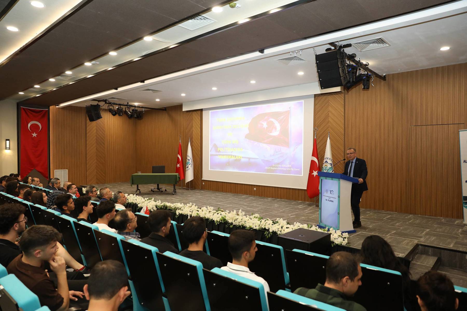 Alanya Alaaddin Keykubat Üniversitesinde (ALKÜ)’de Emekli Jandarma Kurmay Albay Dr. Eray Güçlüer’in konuşmacı olduğu “Türk Savunma Sanayinin Gelişimi ve Türk Dış Politikasına Etkisi” konferansında savunma sanayinin tarihsel dönüşümü ile Türkiye’nin dış politika vizyonu üzerindeki stratejik etkilerini anlatıldı.