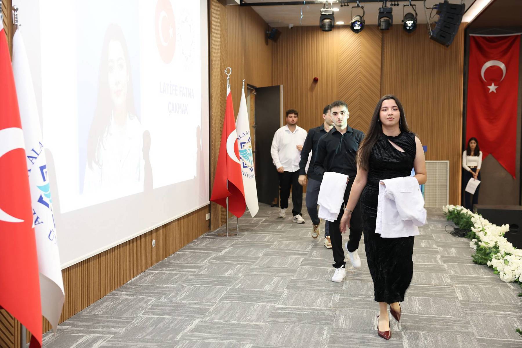 Alanya Alaaddin Keykubat Üniversitesinde (ALKÜ) yeni dönemin başlamasının ardından ALKÜ’lü öğrenciler, mesleklerinde ilk adım atmanın heyecanını yaşamaya devam ediyor. Bu kapsamda ALKÜ Diş Hekimliği Fakültesi tarafından bu yıl fakülteye başlayan öğrencilere 2025-2026 Eğitim-Öğretim Yılı Beyaz Önlük Giyme Töreni düzenlendi. Rektörlük Binası Alev Alatlı Konferans Salonu’nda yapılan törene Rektör Yardımcıları Prof. Dr. Atıf Bayramoğlu, Prof. Dr. Mehmet Kılıç, Diş Hekimliği Fakültesi Dekanı Prof. Dr. Mehmet Akın, önceki dönem dekanlardan Prof. Dr. İhsan Levent Aral, Antalya Diş Hekimleri Odasından Diş Hekimi Mürüvet Turhan, dekanlar, MYO müdürleri, akademisyenler, aileler ve öğrenciler katıldı.