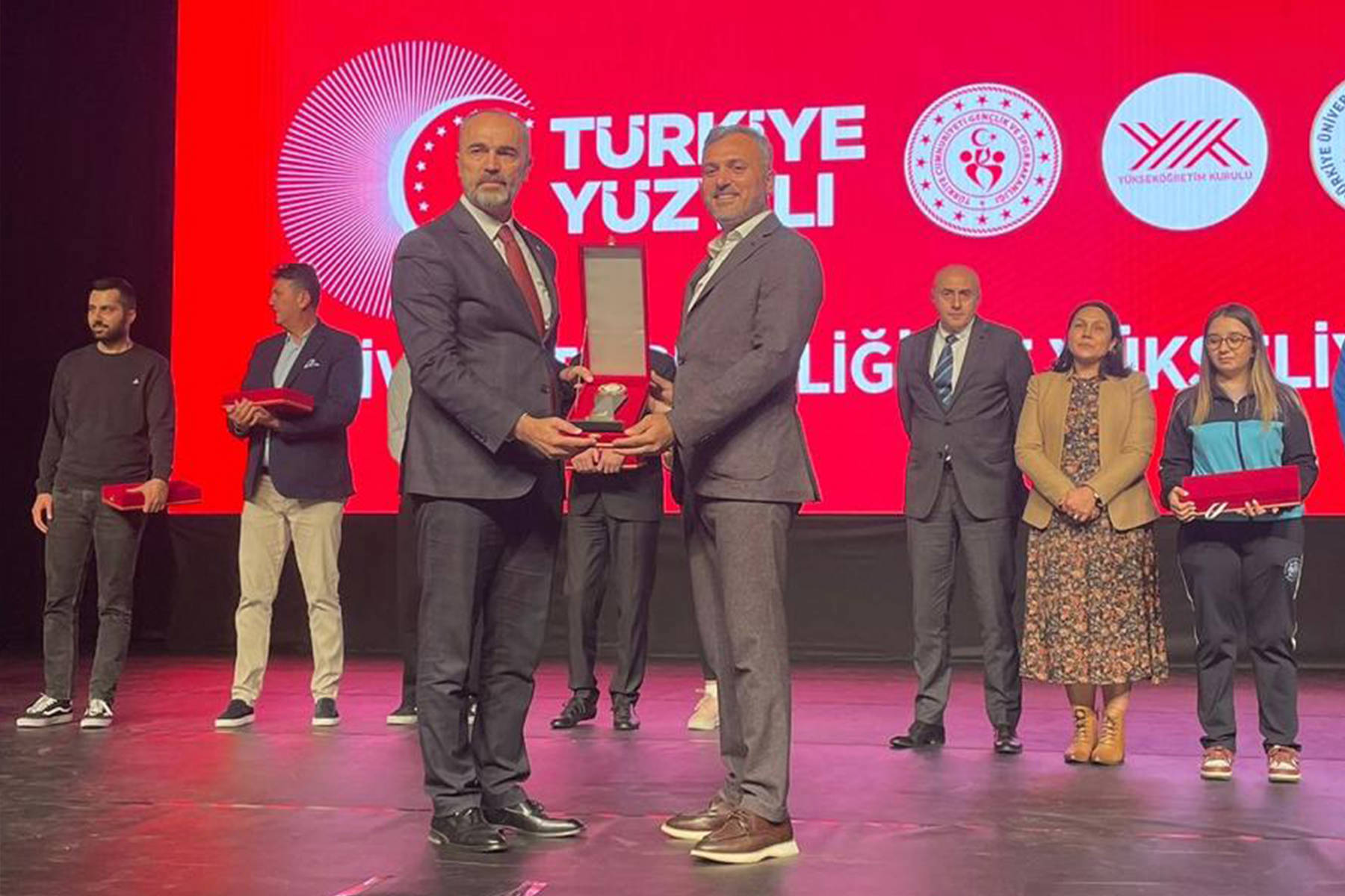 Programda 2025 yılında TÜSF tarafından organize edilen yurt içi üniversite sporları faaliyetlerinde ve FISU, EUSA tarafından organize edilen yurt dışı üniversite sporları faaliyetlerinde çeşitli kategorilerde başarılı sporculara, üniversitelerine ve yöneticilere ödüller takdim edildi. ALKÜ, FISU’da altın madalya kazanan 7 üniversite arasında yer aldı. ALKÜ’ye başarı plaketini TÜSF Başkanı Prof. Dr. Mutlu Türkmen SKS Başkanı Hasan Uyaroğlu’na takdim etti. Başkan Uyaroğlu yaptığı açıklamada, “Bizlerden hiçbir zaman desteklerini esirgemeyen Üniversitemiz Rektörü Prof. Dr. Kenan Ahmet Türkdoğan’a sonsuz teşekkürlerimizi sunuyoruz.” dedi.