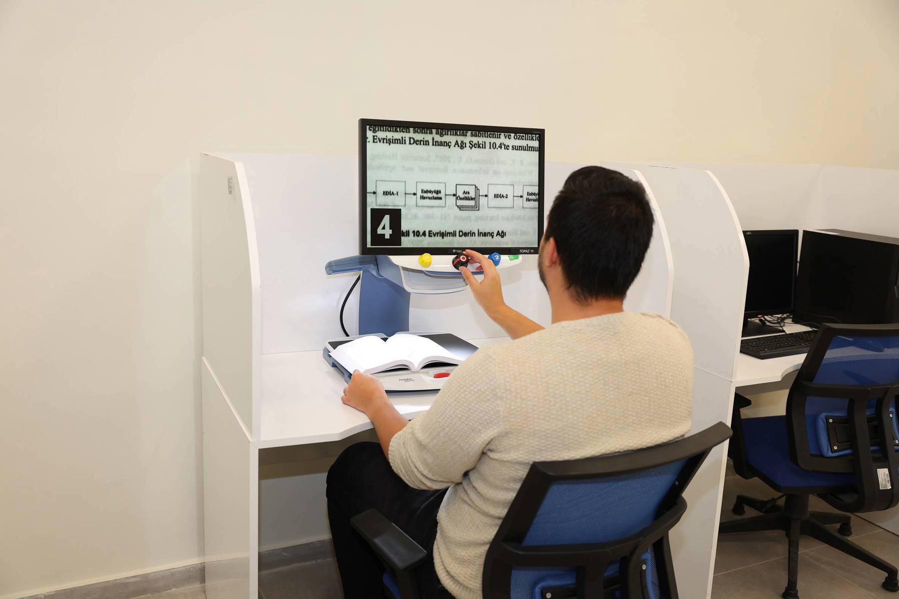 Alanya Alaaddin Keykubat Üniversitesi (ALKÜ) her geçen gün bünyesine kattığı teknoloji ve yeniliklerle öğrencilerine yönelik hizmet kalitesini en üst seviyelere çıkarmaya devam ediyor. 52 binin üzerinde basılı kitap, 31 binin üzerinde elektronik kitap, tez, makale gibi toplamda 88 bin 161 eserlerle öğrencilerine eşsiz bir bilgi hazinesi hizmeti sunan ALKÜ Prof. Dr. Fuat Sezgin Merkez Kütüphanesinde dezavantajlı öğrencilerin kütüphane olanaklarından tam faydalanabilmesi için cihaz ve program eklemeleri yapılarak olanaklar genişletildi. Özellikle görme engelli bireyler için bilgisayar kullanımı ve belge incelemelerini kolaylıkla yapabilmeleri için iki program ve iki cihaz hizmete girdi.