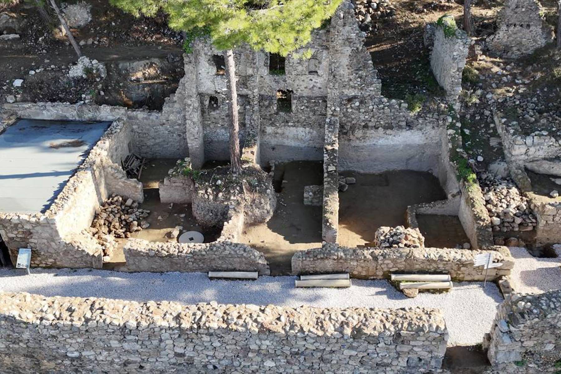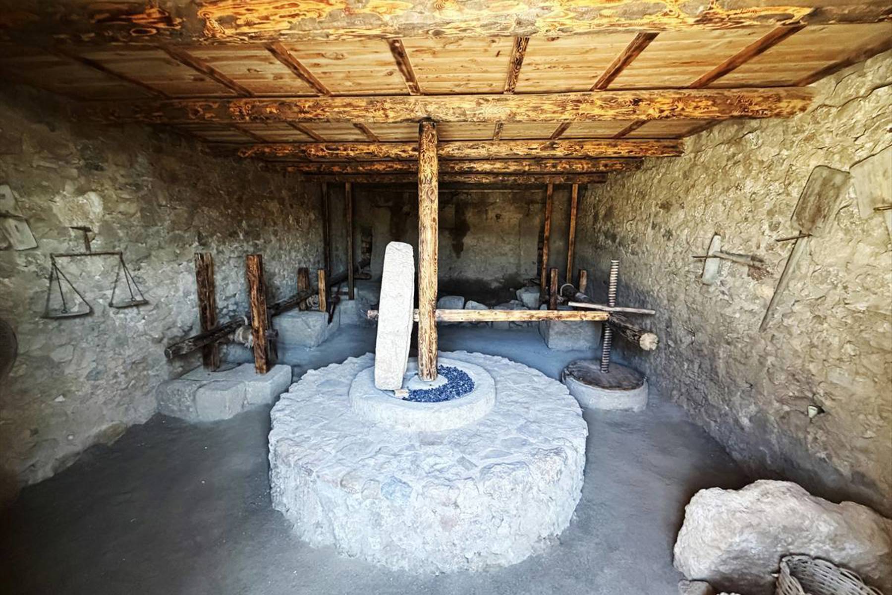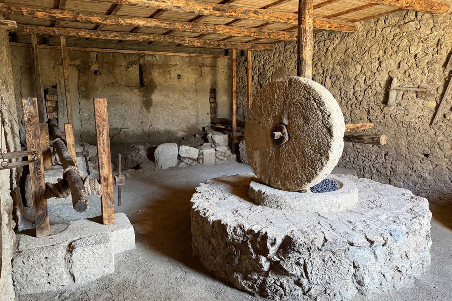 Ergürer, kentte neredeyse her yapının altında bir zeytinyağı ya da diğer üretimlere ait atölye ve işliklerin olduğuna dikkati çekerek, bunların üzerinde de 2 veya 3 katlı konutların bulunduğunu kaydetti. Evlerin caddeye bakan taraflarında üretime yönelik dükkan, üst katlarda ise insanların yaşadığı konutların olduğunu anlatan Ergürer, "Zeytinyağı işliklerinin kent içinde olması bizim için ilginç oldu. Genelde üretimler kentin dışında, sur dışındaki alanlarda olur. Burada ise neredeyse her yapının altında olması dikkat çekici. Bu durum, burada zeytinyağı üretiminin yoğun bir şekilde yapıldığını gösteriyor." diye konuştu. Kültür ve Turizm Bakanlığı, Kültür Varlıkları ve Müzeler Genel Müdürlüğünün izni ve desteğiyle Geleceğe Miras Projesi kapsamında çalışmalar yürüttüklerini dile getiren Ergürer, 2024'te kentin güneybatı caddesinde neredeyse tüm taş ve malzemelerin orijinal yerinde olduğu bir zeytinyağı işliğini tespit ettiklerini kaydetti. Ergürer, zeytinyağının biriktirildiği, o dönemde "pitos" olarak adlandırılan büyük depolama kabının da yine orijinal yerinde bulunduğunu aktararak, şöyle devam etti: "Bakanlığımıza bu bulguların belgelerini ve verilerini paylaştıktan sonra, burayı yeniden ayağa kaldırarak, gelen ziyaretçilere zeytinyağı üretimini göstermek amacıyla çalışma yaptık. Burada zeytinler işliklerde kırılıyor, pres bölümüne götürülüyor, ahşap kollar ve mekanizmalar yardımıyla zeytinyağı sıkılarak kaplara biriktiriliyor. Daha sonra çeşitli aletlerle diğer depolama kaplarına aktarılıyor."