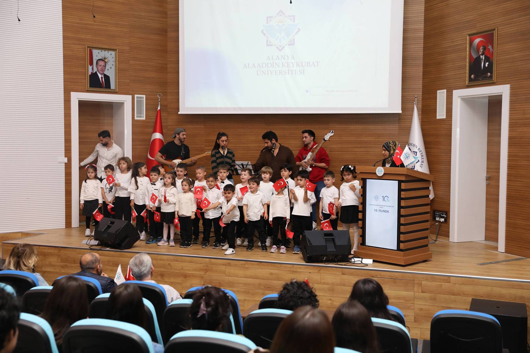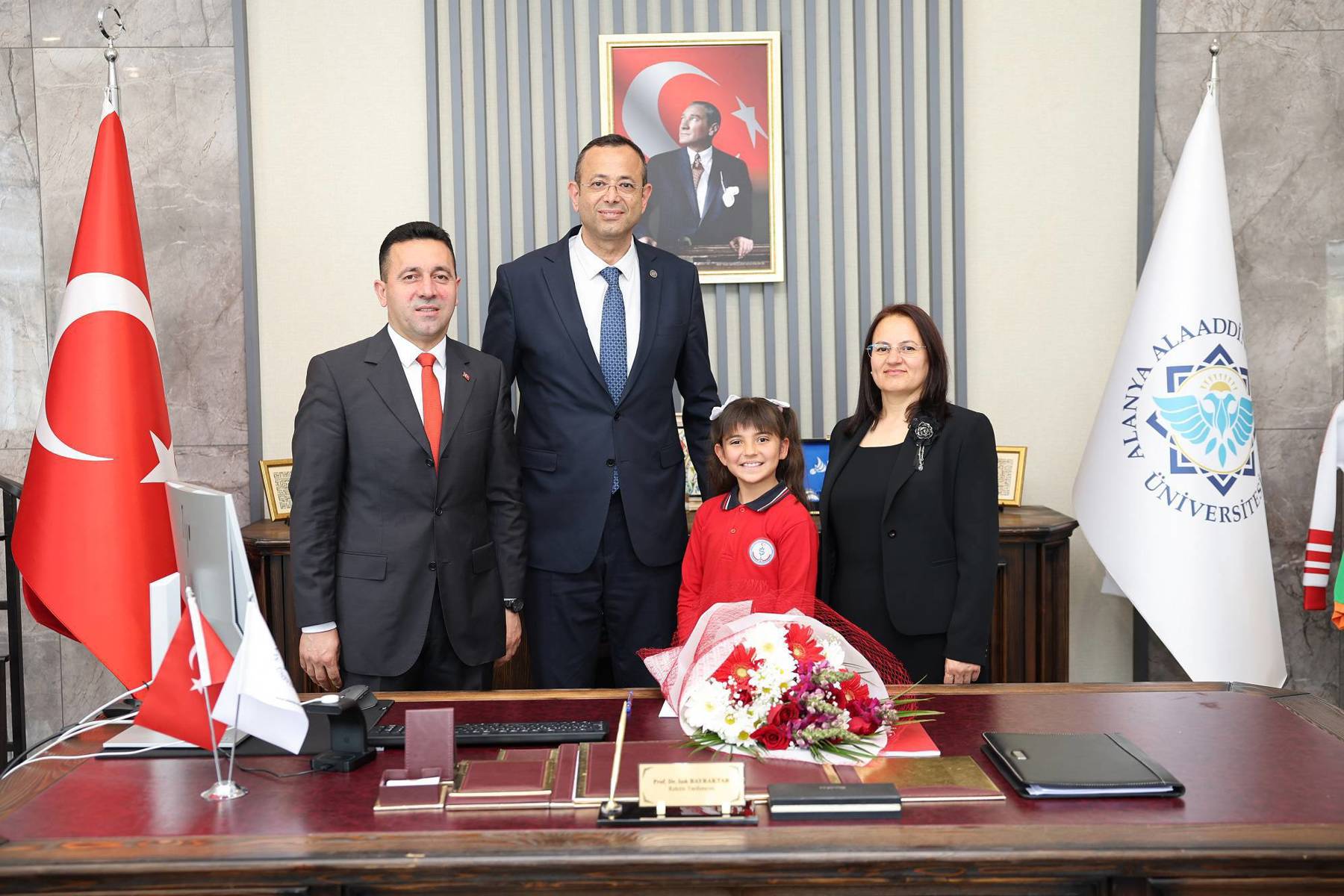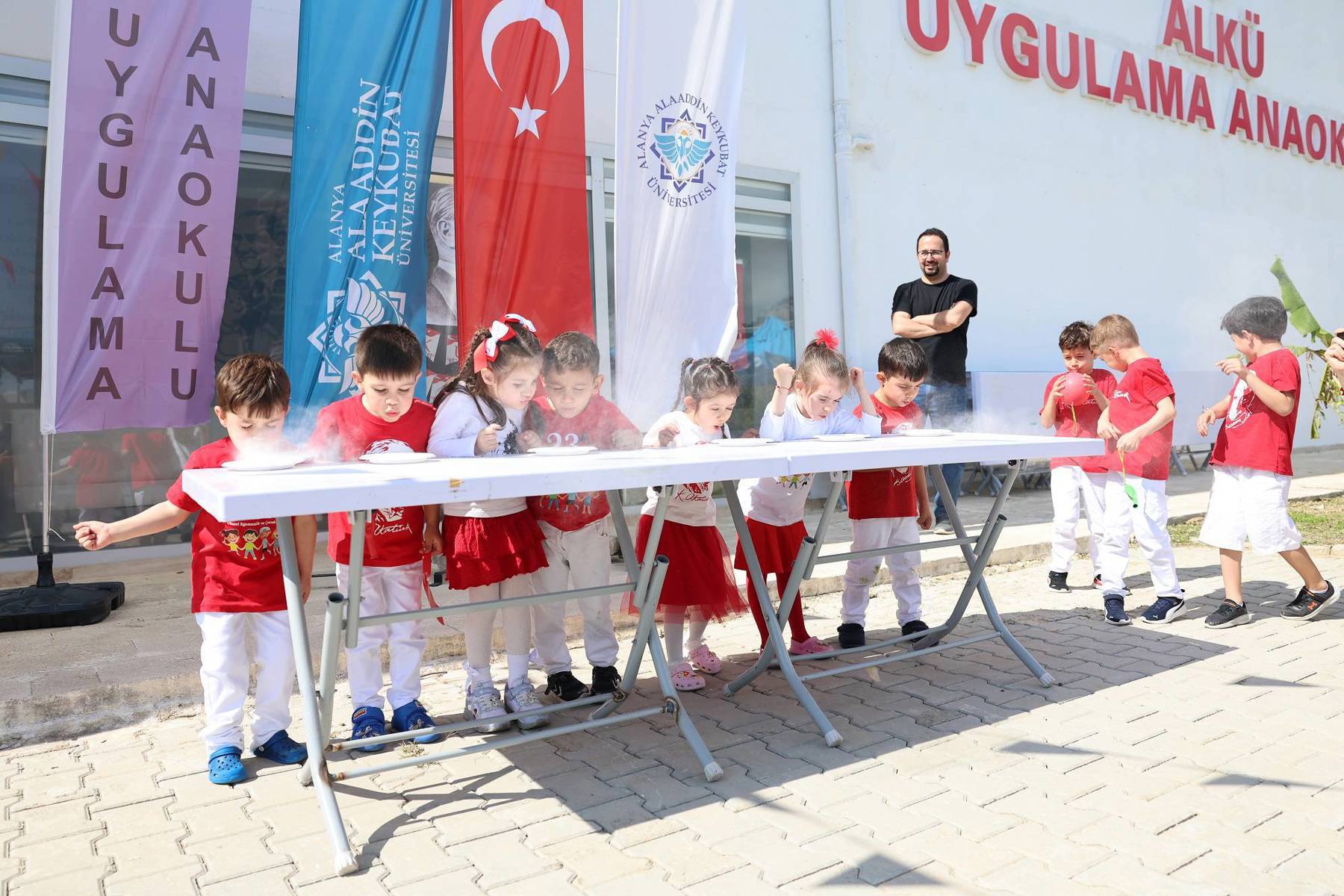 Alanya Alaaddin Keykubat Üniversitesinde (ALKÜ), 23 Nisan Ulusal Egemenlik ve Çocuk Bayramı, çeşitli okullardan çocukların ziyaretleri, makam koltuklarının devredilmesi ve ALKÜ Uygulama Anaokulunun yaptığı birbirinden güzel etkinliklerle coşkuyla kutlandı