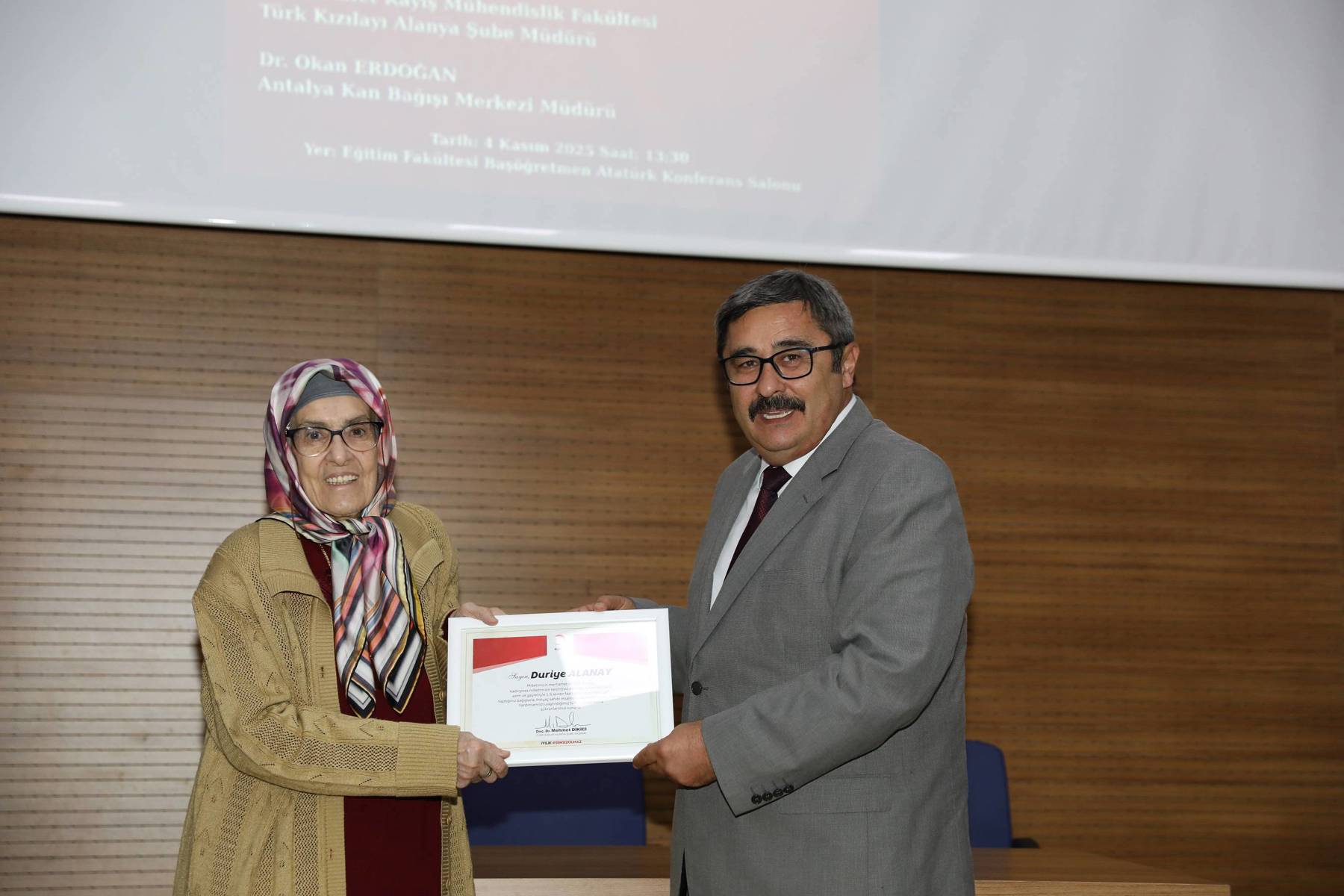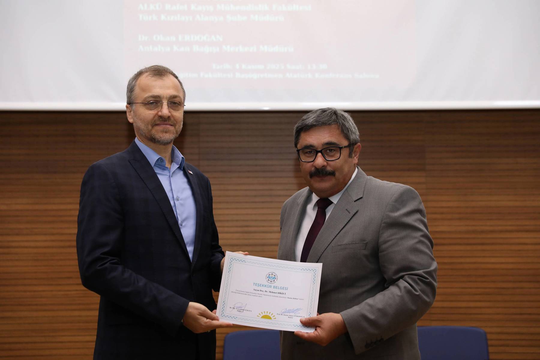 Program, Rafet Kayış Mühendislik Fakültesi Öğretim Üyesi ve Kızılay Alanya Şube Müdürü Doç. Dr. Mehmet Dikici’nin konuşmasıyla devam etti. Dikici, Kızılay’ın 1868 yılından bu yana insanlığa uzanan yardım eli olduğunu belirterek kurumun tarihsel misyonunu ve toplumsal sorumluluğunu anlattı. Etkinliğin bir diğer konuşmacısı olan Antalya Kan Bağışı Merkezi Müdürü Dr. Okan Erdoğan, “Kan Bağışı ve Önemi” başlıklı sunumunda, kan bağışının hem tıbbi hem de insani boyutlarını ele aldı. Erdoğan, “Bir ünite kan, üç cana umut olur. Kan vermek sadece bir bağış değil, bir yaşam sorumluluğudur.” sözleriyle bağışın önemine dikkat çekti. Konuşmaların ardından, katılımcılara kan bağışı çağrısı yapıldı. Gün boyunca, üniversitenin amfitiyatrosu önünde kurulan Kızılay Kan Bağışı Araçlarında gönüllü bağışlar kabul edildi.