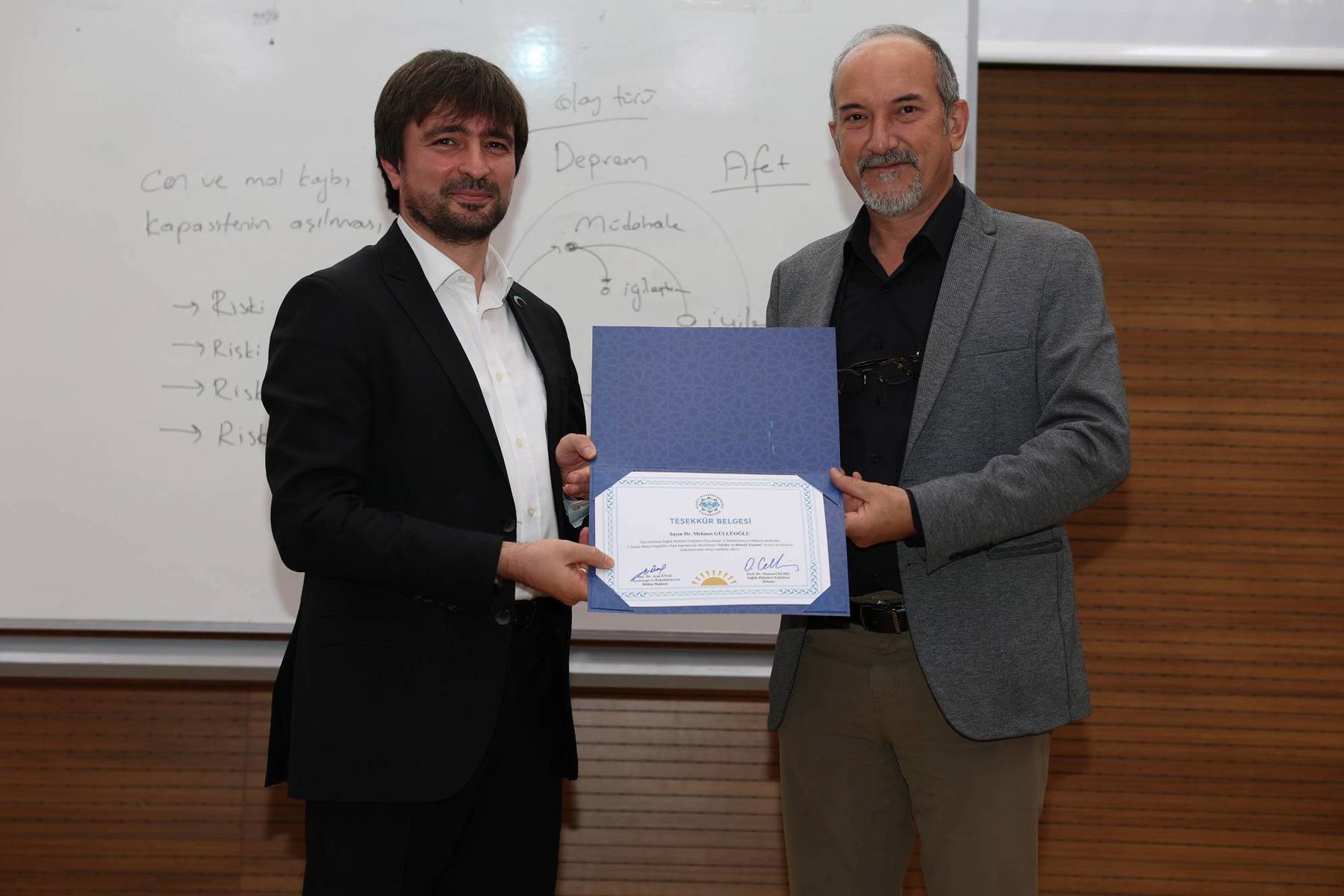 ALKÜ’lü öğrencilere yönelik bilgi ve tecrübe aktarımı programı kapsamında 3 Aralık Engelliler Günü dolayısıyla ALKÜ Sağlık Bilimleri Fakültesi Fizyoterapi ve Rehabilitasyon Bölümü tarafından “Afetler ve Bilinçli Toplum” isimli konferans düzenlendi. AFAD önceki dönem başkanı ve Yeşilay Genel Başkan Yardımcısı Dr. Mehmet Güllüoğlu’nun konuşmacı olduğu konferans, Eğitim Fakültesi Başöğretmen Atatürk Konferans Salonu’nda düzenlendi. Konferansa Sağlık Bilimleri Fakültesi Dekanı Prof. Dr. Osman Celbiş, bölüm akademisyenleri ve öğrenciler katıldı. Dr. Güllüoğlu konuşmasında AFAD çalışmaları, afetler öncesi alınacak tedbirler, afet sırasında yapılacak acil müdahaleler ve sonrasını detaylarıyla anlattı. Güllüoğlu konuşmasının devamında Yeşilay’ın çalışmalarını ve bağımlılıkla mücadele ile ilgili detaylı bilgiler verdi. Güllüoğlu daha sonra yaptığı internet ortamlı bilgi yarışmasında başarılı olan ilk 3 öğrenciye Yeşilay’dan hediyeler verdi. Program, Dekan Prof. Dr. Osman Celbiş tarafından Güllüoğlu’na teşekkür belgesi takdimiyle sona erdi.