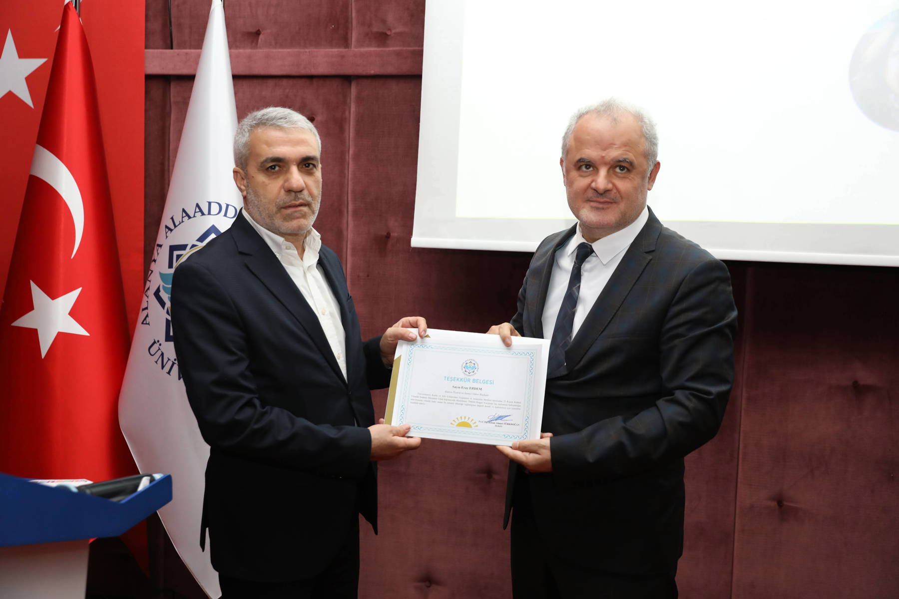 Programın açış konuşmasını yapan ALKÜKAM Müdürü Doç. Dr. Meltem Akca, kadına yönelik şiddetle mücadelenin her zaman süreceğini dile getirdi. Doç. Dr. Akça, hayatını kaybeden kadınlara rahmet dilerken şiddet gören ve yardıma ihtiyacı olan tüm kadınların her zaman yanlarında olacaklarını belirtti. Konuşmaların ardından panele geçildi. Panelde Av. Gülfer Gözütok tarafından kadına yönelik şiddetin hukuki boyutu anlatırken, Sosyal Çalışmacı Duygu Urlu ise kadına yönelik şiddetle mücadelede Aile ve Sosyal Hizmetler Bakanlığı çalışmaları konusunu detaylarıyla ele alındı. Panelde öğrencilere gerekli bilgilendirmeler yapıldıktan sonra panelistler soruları cevapladılar. Programda kadına yönelik şiddetle mücadele kapsamında ALKÜKAM tarafından yapılan “Ödüllü Slogan Yarışması”nda dereceye girenlere ödülleri verildi. Yarışmaya sponsor olan ALTSO tarafından sağlanan 30 bin liralık hediye çekleri ALTSO Yönetim Kurulu Üyesi Adil Memiş tarafından öğrencilere verildi. Programın devamında Rektör Yardımcısı Prof. Dr. Bayramoğlu, Dr. Öğr. Üyesi Serpil Bardakçı Tosun’a, Av. Gülfer Gözütok’a, Duygu Urlu’ya, Sosyal Hizmet Merkezi Müdürlüğü Eğitim Danışmanlık Birimi Görevlisi Özen Gürbüz’e teşekkür belgesi verdi. Bayramoğlu, ALTSO’nun katkılarından dolayı Başkan Eray Erdem’e teşekkür ederek belgesini Adil Memiş’e teslim etti. Program toplu hatıra fotoğrafıyla sona erdi.
