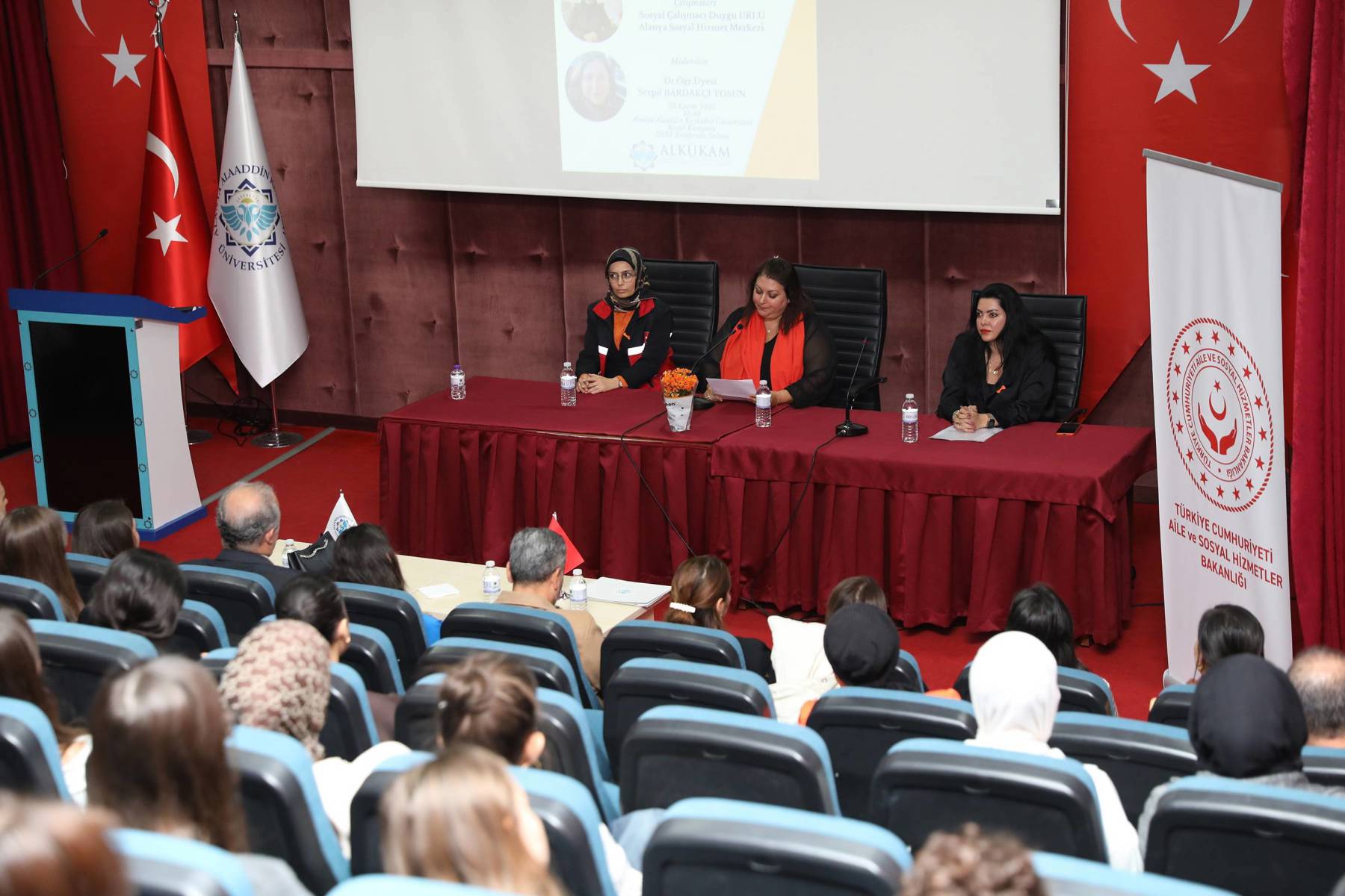 Alanya Alaaddin Keykubat Üniversitesinde (ALKÜ) düzenlenen çeşitli etkinliklerle toplumsal konularda farkındalık oluşturulmaya ve dikkat çekilmeye devam ediliyor. Bu kapsamda ALKÜ Kadın ve Aile Çalışmaları Uygulama ve Araştırma Merkezi tarafından İktisadi, İdari ve Sosyal Bilimler Fakültesi Konferans Salonu'nda “25 Kasım Kadına Yönelik Şiddetle Mücadele Paneli” düzenlendi. Moderatörlüğünü Dr. Öğr. Üyesi Serpil Bardakçı Tosun’un yaptığı panelde, Antalya Barosu Alanya Kadın Hakları Kurulu Başkanı Av. Gülfer Gözütok, Alanya Sosyal Hizmet Merkezi Sosyal Çalışmacı Duygu Urlu konuşmacı oldu. Panele Rektör Yardımcısı Prof. Dr. Atıf Bayramoğlu, ALTSO Yönetim Kurulu Üyesi Adil Memiş, ALKÜ Kadın ve Aile Çalışmaları Uygulama ve Araştırma Merkezi (ALKÜKAM) Müdürü Doç. Dr. Meltem Akca, ALKÜKAM üyeleri, akademisyenler ve öğrenciler katıldı.