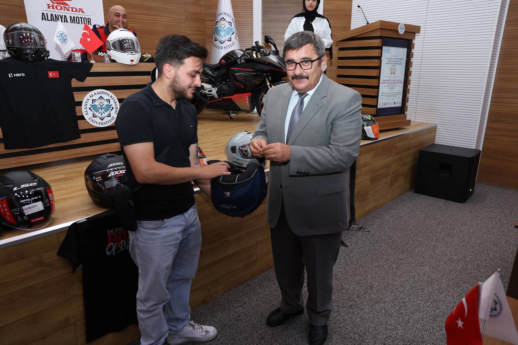 Alanya Alaaddin Keykubat Üniversitesinde (ALKÜ) 27-31 Ekim tarihleri arasında motor sürücülerinin daha bilinci ve dikkatli olmasına adına “Trafik ve İki Tekerlekli Taşıtlarda Kask ile Koruyucu Ekipmanların Önemi” isimli konferans ve sürüş teknikleri, trafikte alınacak önlemler uygulamaları yapıldı.