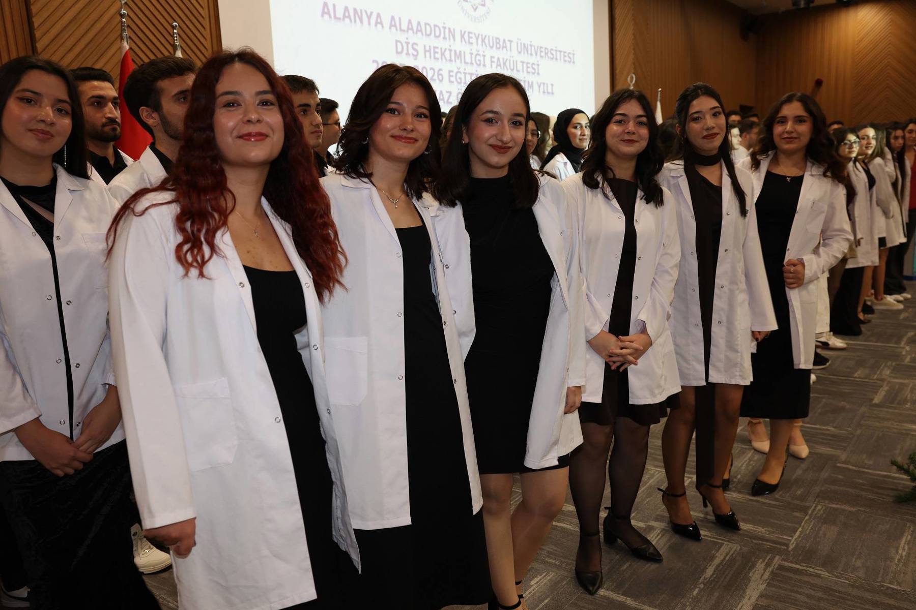 Alanya Alaaddin Keykubat Üniversitesi (ALKÜ) Diş Hekimliği Fakültesi birinci sınıf öğrencileri, Beyaz Önlük Giyme Töreni’nde beyaz önlüklerini giyerek diş hekimliğine ilk adımlarını attılar.