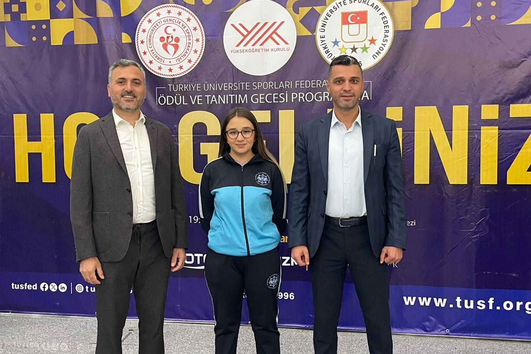 Programda 2025 yılında TÜSF tarafından organize edilen yurt içi üniversite sporları faaliyetlerinde ve FISU, EUSA tarafından organize edilen yurt dışı üniversite sporları faaliyetlerinde çeşitli kategorilerde başarılı sporculara, üniversitelerine ve yöneticilere ödüller takdim edildi. ALKÜ, FISU’da altın madalya kazanan 7 üniversite arasında yer aldı. ALKÜ’ye başarı plaketini TÜSF Başkanı Prof. Dr. Mutlu Türkmen SKS Başkanı Hasan Uyaroğlu’na takdim etti. Başkan Uyaroğlu yaptığı açıklamada, “Bizlerden hiçbir zaman desteklerini esirgemeyen Üniversitemiz Rektörü Prof. Dr. Kenan Ahmet Türkdoğan’a sonsuz teşekkürlerimizi sunuyoruz.” dedi.