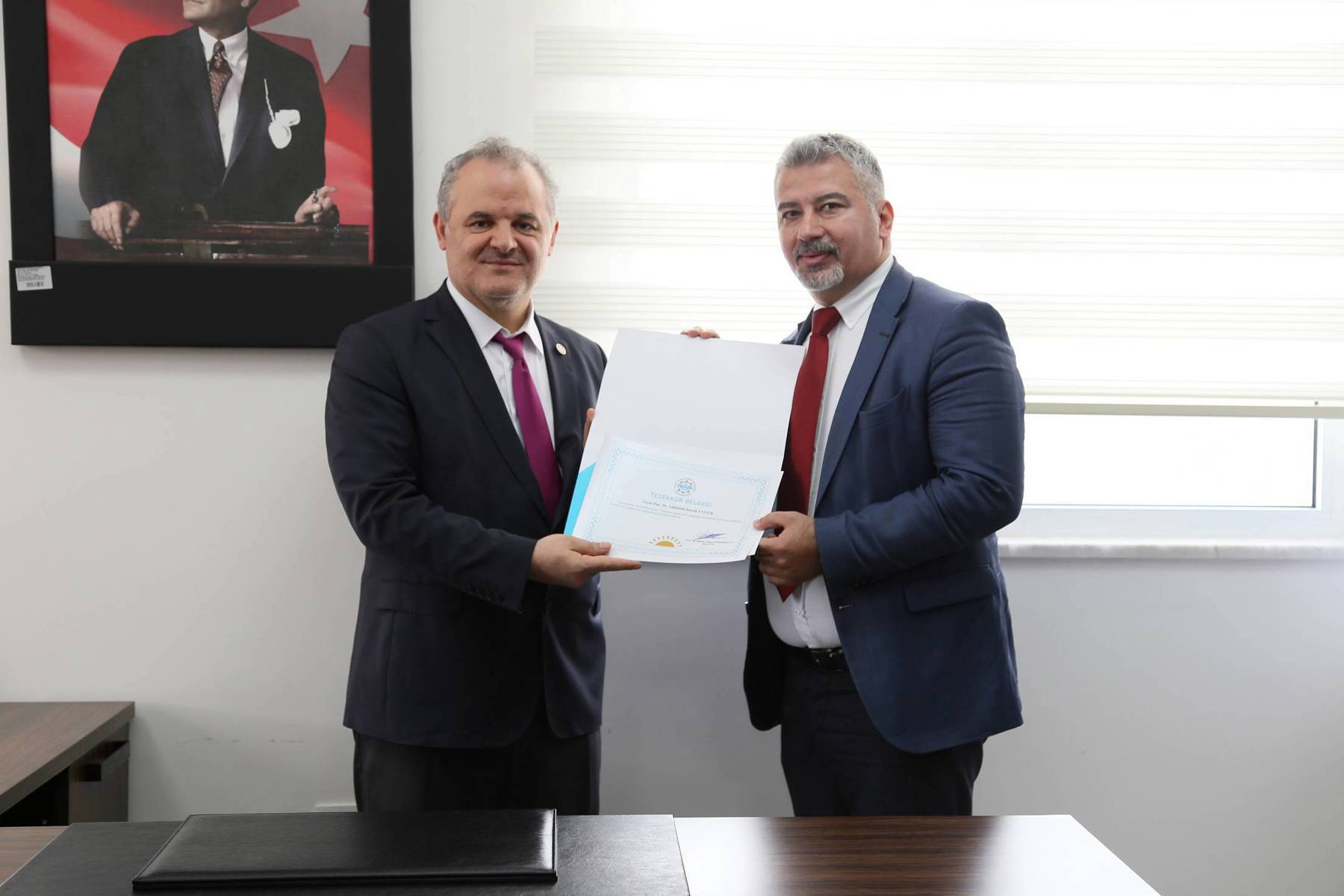 Alanya Alaaddin Keykubat Üniversitesi (ALKÜ) Rektörü Prof. Dr. Kenan Ahmet Türkdoğan tarafından ALKÜ Tıp Fakültesine dekan olarak atanan Prof. Dr. Atıf Bayramoğlu; eski Dekan Prof. Dr. Arife Uslu Gökceoğlu’ndan görevi devralıp, bugüne kadar yapmış olduğu özverili çalışmalarından dolayı kendisine teşekkür ederek çiçek takdiminde bulundu. Tıp Fakültesi binası dekanlık makamında gerçekleşen törene, Rektör Yardımcıları Prof. Dr. Mehmet Kılıç, Prof. Dr. Mehmet Akın, Genel Sekreter Yardımcısı Onur Ocakdan katıldı. Rektör Yardımcısı Prof. Dr. Kılıç tarafından eski Dekan Gökceoğlu’na; Prof. Dr. Akın tarafından eski Dekan Yardımcısı Prof. Dr. Sevinç Şahin’e; Prof. Dr. Bayramoğlu tarafından da eski Dekan Yardımcısı Doç. Dr. Abdullah Burak Uygur’a teşekkür belgesi verildi. Teşekkür belgelerinin ardından görevi devralan Prof. Dr. Bayramoğlu görevi devraldığı Gökceoğlu’na çiçek takdim etti.