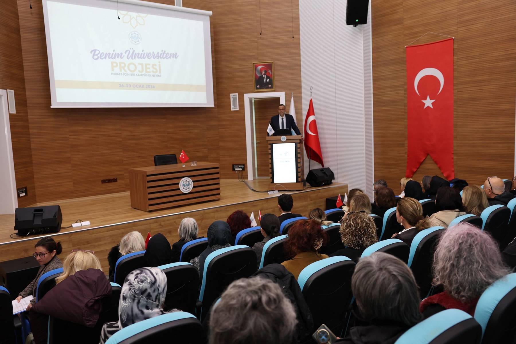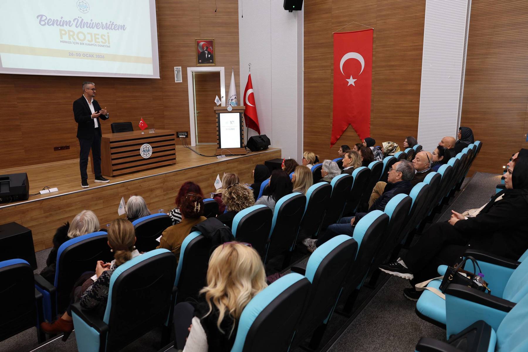 Rektör Yardımcısı Prof. Dr. Işık Bayraktar yaptığı konuşmada, proje ile akademik ortamı toplumun tüm kesimleri için erişilebilir kılmayı ve üniversite–şehir bütünleşmesini güçlendirmeyi amaçladıklarını söyledi. Prof. Dr. Bayraktar konuşmasında, “Üniversiteyi yalnızca eğitim verilen bir kurum değil, topluma açık bir öğrenme ve paylaşım alanı olarak ele alan önemli bir toplumsal katkı modelidir. Program kapsamında katılımcılarımız; üniversite yaşamını tanıyacak, akademik ve uygulamalı etkinliklere katılacak, farklı disiplinlerle etkileşim kurarak kampüs kültürünü doğrudan deneyimleme imkânı bulacaktır. Bu yönüyle proje, bireysel gelişimi desteklerken aynı zamanda kuşaklar arası öğrenmeye ve toplumsal etkileşime katkı sunmaktadır. Bu anlamlı çalışmanın hayata geçirilmesinde emeği geçen başta proje koordinatörü Doç. Dr. Özgür Nalbant olmak üzere tüm akademik ve idari personelimize, paydaş kurumlarımıza ve destek veren kuruluşlara teşekkür ediyorum. “Benim Üniversitem” projesinin üniversitemize, şehrimize ve katılımcılarımıza hayırlı olmasını diliyorum.” dedi.