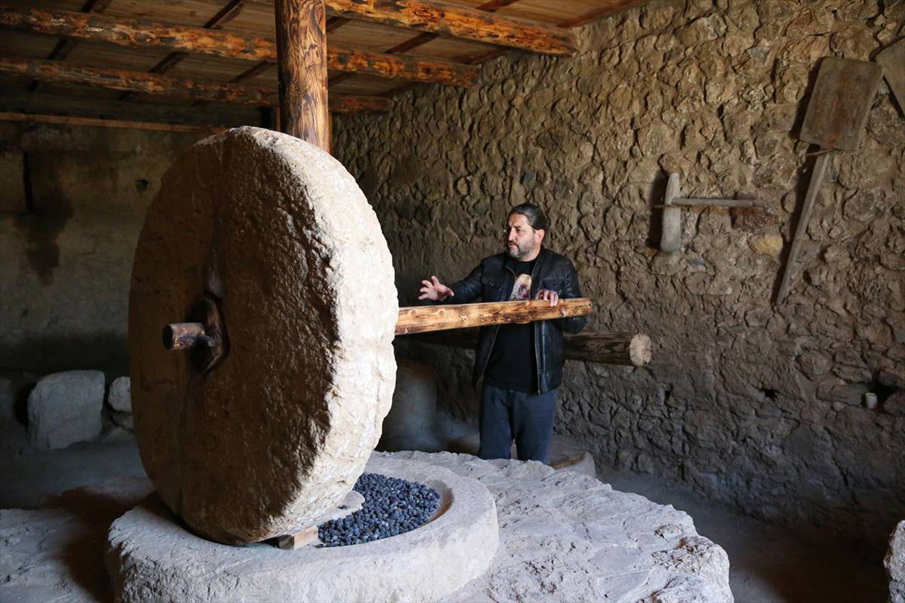 Ergürer, kentte neredeyse her yapının altında bir zeytinyağı ya da diğer üretimlere ait atölye ve işliklerin olduğuna dikkati çekerek, bunların üzerinde de 2 veya 3 katlı konutların bulunduğunu kaydetti. Evlerin caddeye bakan taraflarında üretime yönelik dükkan, üst katlarda ise insanların yaşadığı konutların olduğunu anlatan Ergürer, "Zeytinyağı işliklerinin kent içinde olması bizim için ilginç oldu. Genelde üretimler kentin dışında, sur dışındaki alanlarda olur. Burada ise neredeyse her yapının altında olması dikkat çekici. Bu durum, burada zeytinyağı üretiminin yoğun bir şekilde yapıldığını gösteriyor." diye konuştu. Kültür ve Turizm Bakanlığı, Kültür Varlıkları ve Müzeler Genel Müdürlüğünün izni ve desteğiyle Geleceğe Miras Projesi kapsamında çalışmalar yürüttüklerini dile getiren Ergürer, 2024'te kentin güneybatı caddesinde neredeyse tüm taş ve malzemelerin orijinal yerinde olduğu bir zeytinyağı işliğini tespit ettiklerini kaydetti. Ergürer, zeytinyağının biriktirildiği, o dönemde "pitos" olarak adlandırılan büyük depolama kabının da yine orijinal yerinde bulunduğunu aktararak, şöyle devam etti: "Bakanlığımıza bu bulguların belgelerini ve verilerini paylaştıktan sonra, burayı yeniden ayağa kaldırarak, gelen ziyaretçilere zeytinyağı üretimini göstermek amacıyla çalışma yaptık. Burada zeytinler işliklerde kırılıyor, pres bölümüne götürülüyor, ahşap kollar ve mekanizmalar yardımıyla zeytinyağı sıkılarak kaplara biriktiriliyor. Daha sonra çeşitli aletlerle diğer depolama kaplarına aktarılıyor."